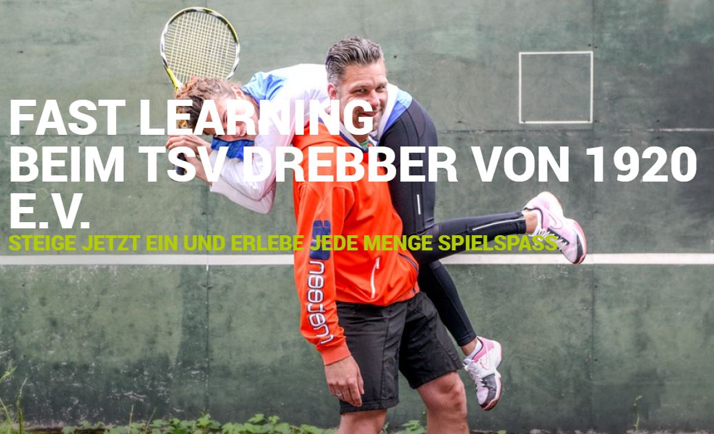 Tennis spielen leicht gemacht – ganz einfach mit Fast Learning. Der innovative Trainingskurs von Tennis-People wird dich mit schnellen Spiel- und Erfolgserlebnissen begeistern. Starte jetzt deinen Kurs beim TSV Drebber und lerne in 5 Wochen Tennis – einfach, schnell und mit jeder Menge Spaß. Fast Learning eben.